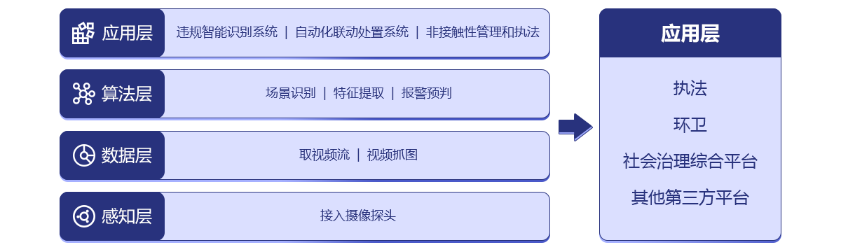 智能视频分析系统是运用先进的人工智能视频分析技术,利用海量的摄像头,对店外经营、游商小贩、道板停车、暴露垃圾等城市事件的违规违法行为进行智能识别、实时预警、智能取证、案件智能派发、快速处置的智能化执法系统,为城市管理提供智能化监督、精细化的管理、执法高效落地 ,并探索“非接触性执法”