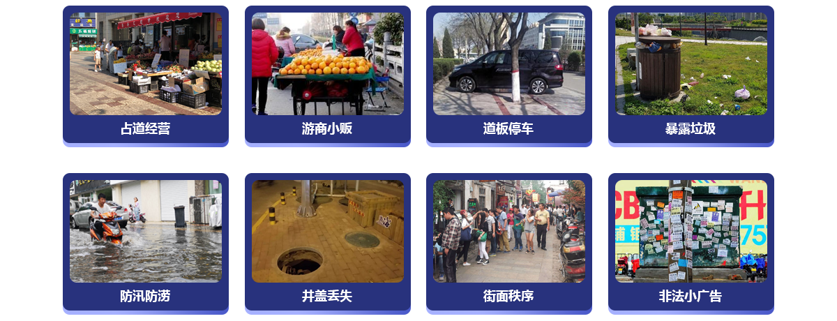 运用先进的人工智能视频分析技术,利用海量的摄像头,对店外经营、游商小贩、道板停车、暴露垃圾等城市事件的违规违法行为进行智能识别